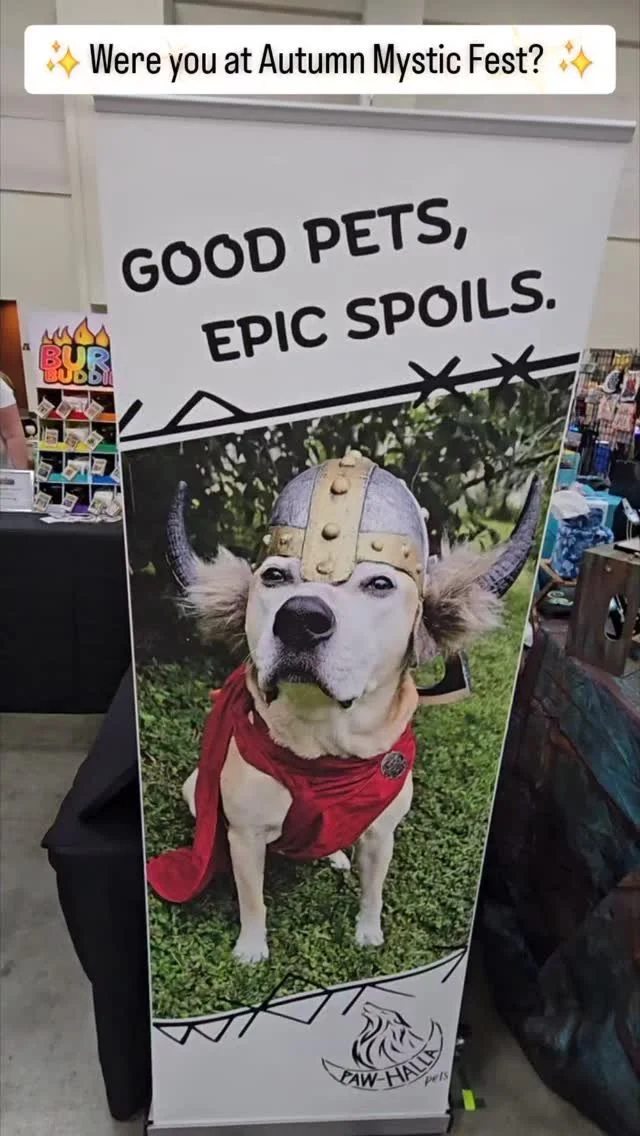 The saga of Paw-Halla Pets began with the daring and intrepid spokesdog Crash, assisted by two sisters and three cats who believed all good pets deserve tasty treats, epic toys and legendary Viking fashion accessories worthy of Valhalla.